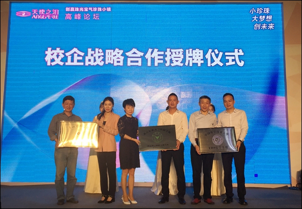 李文莉代表学院与浙江天使之泪珍珠股份有限公司签订了战略联盟合作协议。双方将以珍珠小镇为载体,整合政府、企业、高校众多资源,在工业设计、商业模式、首饰设计等领域展开广泛合作。论坛上还宣布启动了首届全国珍珠创新创业大赛暨全国大学生首届珍珠首饰设计大奖赛,这将开启珍珠首饰设计新秀的新舞台,也为山下湖珍珠设计走向创业创新提供了专业人才储备的新路。