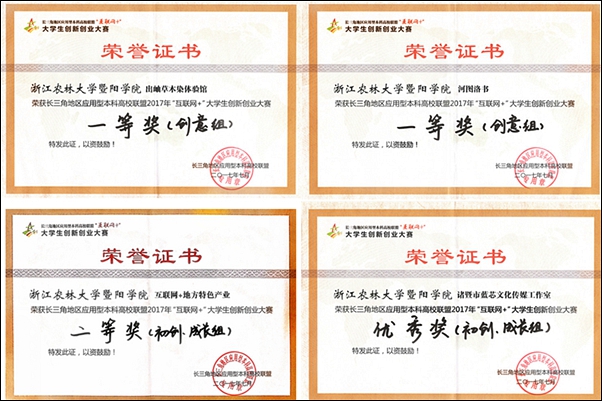 7月8日,长三角地区应用型本科联盟高校“互联网+”大学生创新创业大赛暨创新创业教育论坛在上海应用技术大学落下帷幕。永利官网学子在来自江、浙、沪、皖四地的应用型本科高校同台竞赛中脱颖而出,喜获佳绩。吴淑晶老师指导的作品《出岫草木染工作室》和胡丹轲老师指导的作品《河图洛书》双双荣获创意组一等奖,黄晓英老师指导的作品《互联网+地方产业特色》获得大赛初创成长组二等奖。