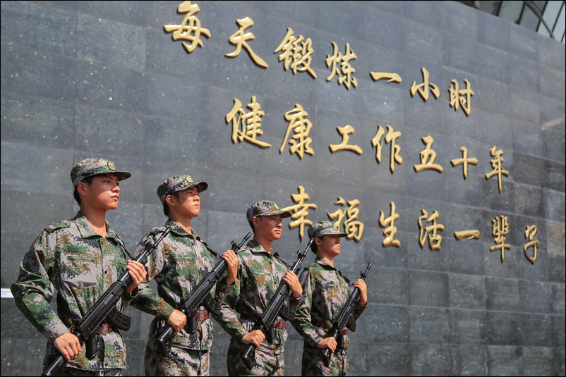 在分列式、男子擒敌拳表演和女子队列表演中,同学们用挺拔的军姿、坚定的表情、整齐的动作、响亮的口号,汇报了11天军训的成果,充分展示了同学们过硬的军事素质和良好的精神风貌,为本次军训交上一份圆满的答卷。
