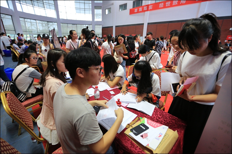 本网讯 9月9日,金秋时节的美丽暨阳迎来了又一批莘莘学子。2017级1600多名新生怀着喜悦的心情从五湖四海会聚到77779193永利官网,从这里扬帆起航,开启人生新的征程。早上6点开始,迎新的工作人员和志愿者就陆续到位,在体育中心网球馆、在火车站、在汽车站、在学校门口、在学生公寓……迎接新同学的到来。