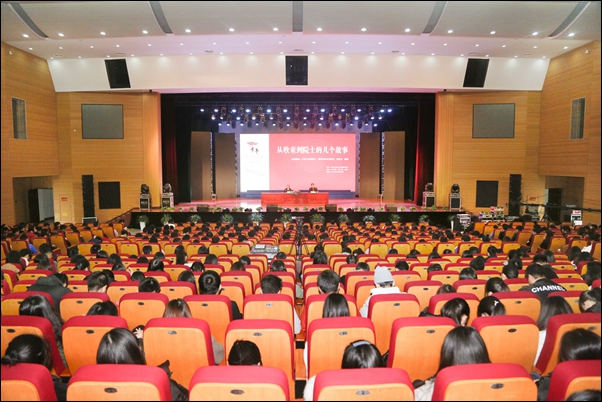 活动中心影剧院座无虚席,暨阳学子热望中翘首以盼。在热烈的掌声中,孙优贤院士以时间为轴,以故事为面,讲述了童年、初中、高中、大学及工作时期所经历过和克服过的有趣事、学习事、困难事、科研事及成就事。