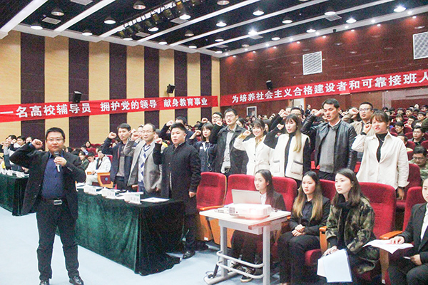 经过初赛笔试和案例分析环节的选拔,共有9位辅导员进入本次比赛的决赛中。决赛开始前,还进行了《高校辅导员誓词》宣誓仪式。决赛阶段包括理论宣讲和谈心谈话2个环节,理论宣讲在于考察辅导员的理论知识功底以及对国家发展形势和政策的把握,各参赛选手围绕所抽取的主题,结合自身经历和工作实际展开宣讲,主题突出、语言生动。谈心谈话环节在于考察辅导员对于学生特征的把握、学生成长成才规律的了解及对学生的教育引导能力,现场抽题,各选手在本环节中抓住问题的关键点,以及学生的心理特征,对学生进行说服和引导教育,帮助学生树立了正确的人生观和价值观。