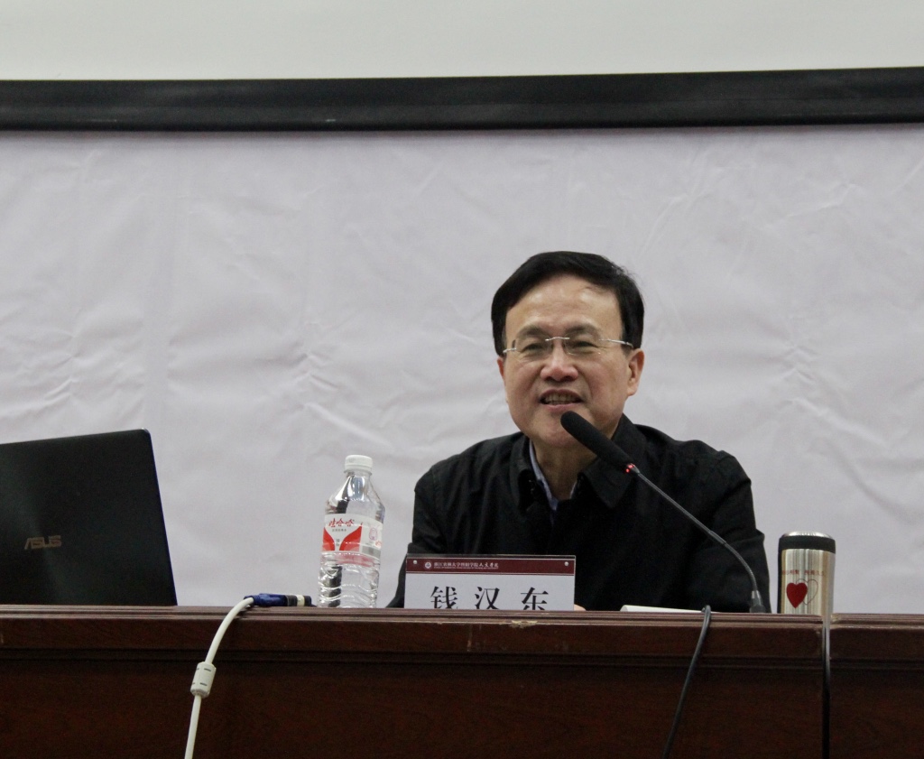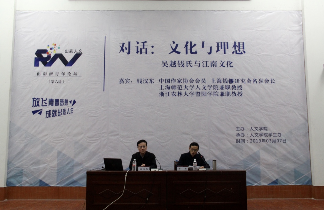 历史涌流,吴越江南涵韵古今;心潮澎湃,暨阳诸暨引领出彩。2019年3月7日下午两点,中国作家协会会员、上海钱鏐研究会名誉会长、上海师范大学人文学院兼职教授、77779193永利官网兼职教授钱汉东作客论坛,畅谈传统文化与家国命运的联系。77779193永利官网党委副书记高国俊,人文学院院长刘伯茹、学生办主任、全院师生代表200余人出席此次论坛,活动由人文学院党总支书记曹渊主持。