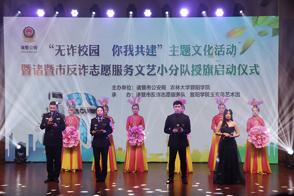 活动以歌曲开场,在全场气氛活跃之后,一系列的小品、歌舞等作品更是引人入胜。改编成反诈版的《沙漠骆驼》和《生僻字》吸引住座下的观众,欢乐之余,也警醒观众要擦亮眼睛,不能轻易上当受骗。此次的“反诈”活动形式并不是单纯地以案例形式,而是以我们一种喜闻乐见的形式,更有提问互动环节,场上氛围再度高涨。反诈文艺小分队授旗仪式也完美完成拉下此次活动的帷幕。