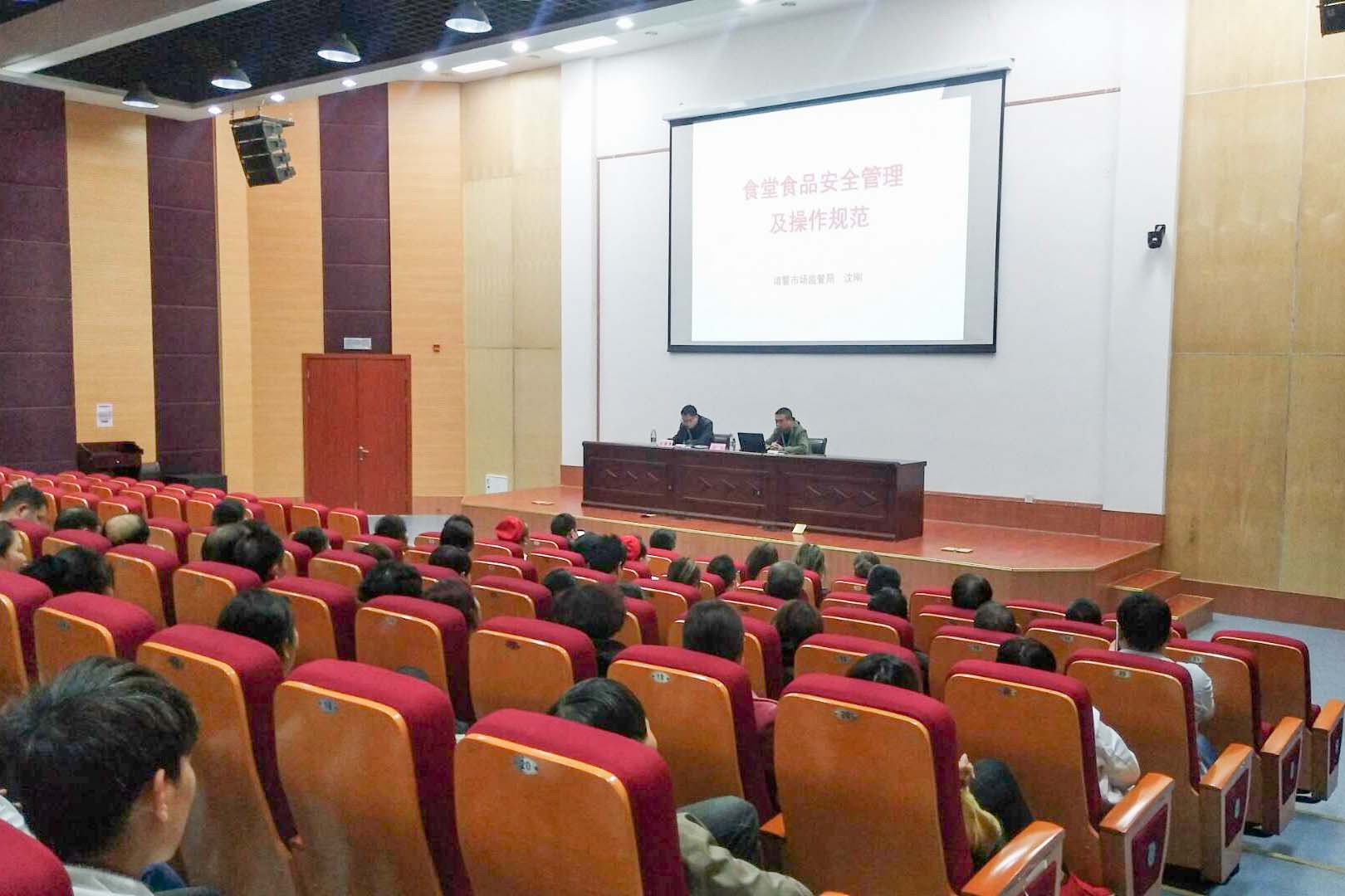为加强永利官网餐饮食品安全、规范食品生产操作行为,4月11日下午,公共保障部在图书馆报告厅进行了“食堂操作规范与食品安全知识”专题讲座,后勤服务中心管理人员、食堂全体员工参加,特邀诸暨市市场监督管理局餐饮科负责人沈刚授课。