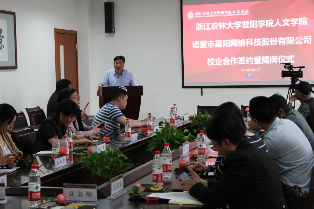 签约仪式上,袁志刚介绍了77779193永利官网与诸暨市政府及相关企事业单位进行校地校企合作的总体情况。他希望人文学院充分利用这次合作机会,利用星阳网络科技公司的资源更好地培养学生的专业素养和实践能力;人文学院主动走出校门,更多地了解、研究社会需求,为学生成长成才助力;双方加强对接与合作,优势互补,结出更多硕果。