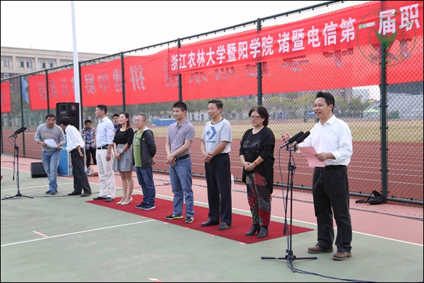 10月22日下午,学院第一届职工趣味运动会在运动场顺利闭幕。学院党委书记寿韬,诸暨市总工会副主席丁光飞,学院工会、后勤保障部、诸暨市总工会、诸暨电信公司相关负责人出席闭幕式。闭幕式由院工会副主席主持。