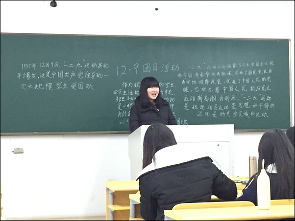 此次活动分为回首历史、伟人评价、话题讨论三个环节。在学生办辅导员的指导下,团员青年们通过播放纪录片、召开主题班会等方式一起回顾了“一二•九”学生爱国运动的历程及意义,纷纷结合自身实际作了发言,并一致认为,作为新时代的青年学生,要高扬爱国运动旗帜,发扬爱国运动精神。