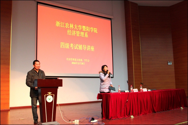 在四级考试辅导讲座上,英语专业老师引导同学们去了解大学英语四级考试改革后的题型与分值分配、应试技巧与重点,学会运用网络学习资源提高学习效率。
