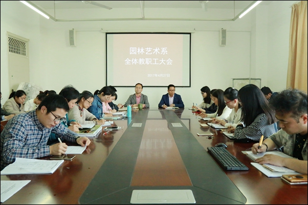 4月20日,园林艺术系组织召开全系教职工大会,督查布置省教育厅巡回诊断工作。会议要求全系教职工认真学习、研讨学院近期下发学习材料和学分制改革及系列教育教学相关规章制度,认真做好毕业论文(设计)、试卷、教学日历、教学大纲及实习实训实验等基础材料复查。