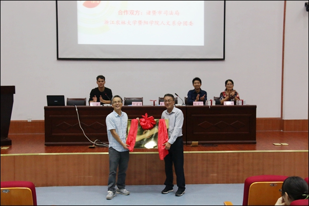 签约仪式上,人文系分团委负责人与诸暨市司法局负责人签署了大学生普法志愿服务项目协议书,并进行大学生志愿服务基地授牌,向大学生普法志愿者授队旗、赠书等活动。来自法学162班的张良同学代表全体普法志愿者表态:要秉承志愿者精神,面向社会大众开展普法宣传。李进喜作总结讲话,介绍了开展普法志愿服务项目的重要意义,并向同学们提出了三点要求:一是要提高认识——把责任“担”起来。二是要营造氛围——把精神“扬”起来。三是要真抓实做——把作用“活”起来。