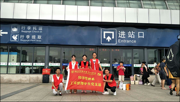 为贯彻落实党中央关于迎接、宣传、贯彻党的十九大的重要指示精神,响应学院“凝心聚力,砥砺前行,以优异成绩迎接党的十九大胜利召开”的号召,经济管理系工商管理学生党支部党员志愿服务队携手团学阳光志愿服务队走进诸暨市火车站,党支部、团学双双联动,国庆假期坚守志愿服务岗,以青春喜迎十九大,以行动献礼祖国。