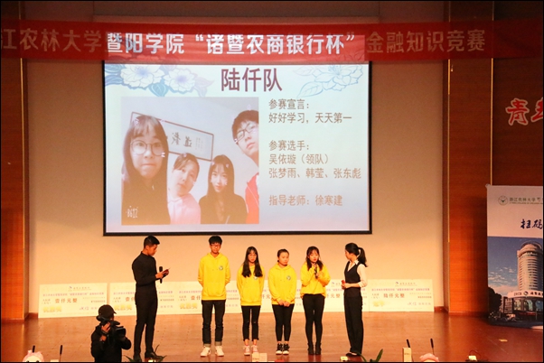 10月31日晚,学院金融知识竞赛决赛在明珠报告厅举行。学院党委副书记高国俊、诸暨农商银行副行长陈钢梁出席活动并给获奖选手颁奖。比赛还邀请诸暨团市委工农青年部部长马蒋凯等5人担任评委。学院团委负责人、各系党总支书记、分团委书记、参赛团队指导老师,学生代表共400余人参加活动。