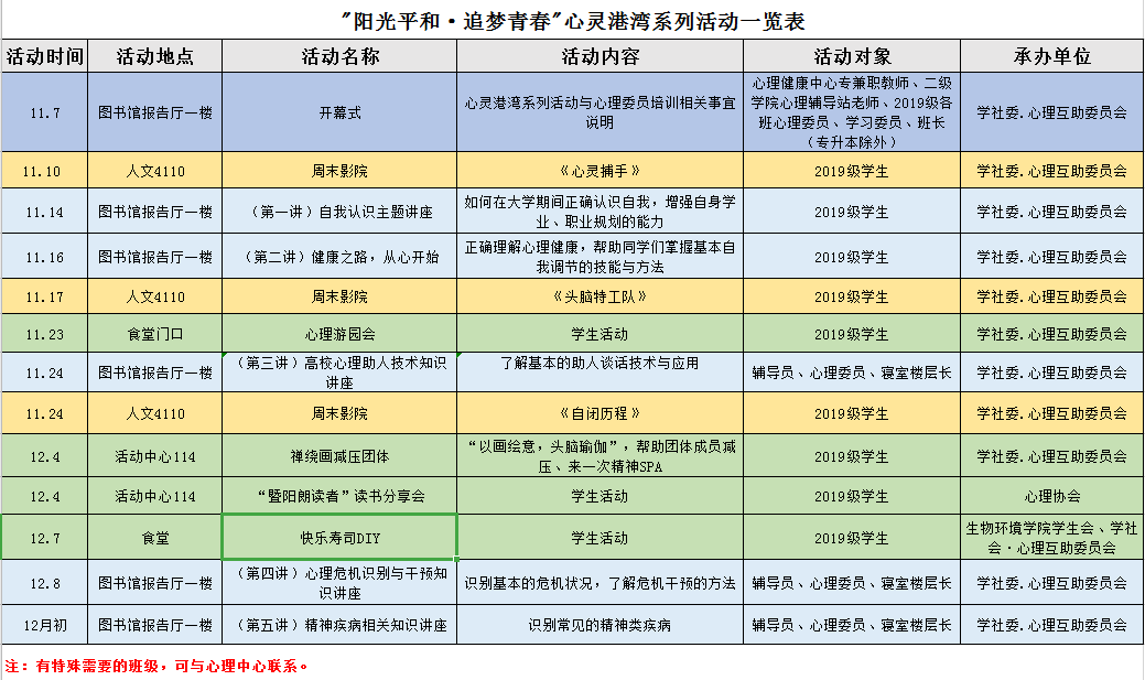 附件:心灵港湾系列活动一览表