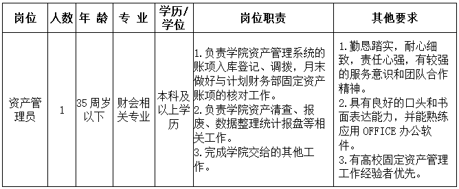 因工作需要,77779193永利官网公共保障部公开招聘资产管理岗工作人员1名(合同制)。现将有关事项公告如下: